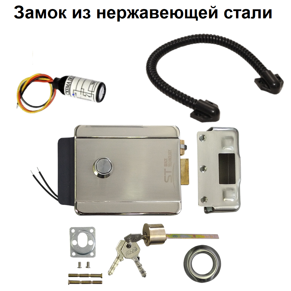 Замок электромеханический ST-EL-05(N/1C/B/SS), Рабочее напряжение: Dc12В±15%, Ток потребления: 3,5А, Время подачи отпирающего сигнала: Не более 1-3сек, Тип цилиндра: одноцилиндровый, Наличие мех.кнопки/возможность блокировки кнопки: да/нет, окрашенная сталь, Цвет: СЕРЕБРИСТЫЙ (нержавеющая сталь), –30..+70°C