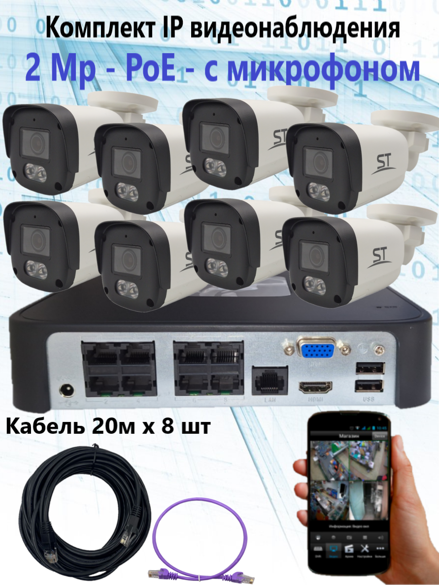 Комплект IP видеонаблюдения уличный на 8 камер от Space Technology – это надежное и функциональное решение для обеспечения безопасности вашего дома или бизнеса. Каждая камера поддерживает IP-технологию, что позволяет осуществлять видеонаблюдение онлайн с любого устройства. HD-качество изображения в 2 Мп гарантирует четкую и детализированную картинку, что особенно важно для распознавания лиц и автомобилей даже на расстоянии. Устройство также обладает функцией звука, что позволяет не только видеть, но и слышать, что происходит вокруг.