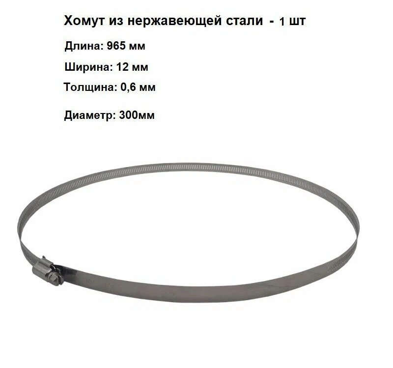 В комплект поставки входит хомут металлический длиной 965 мм и диаметром 300 мм.